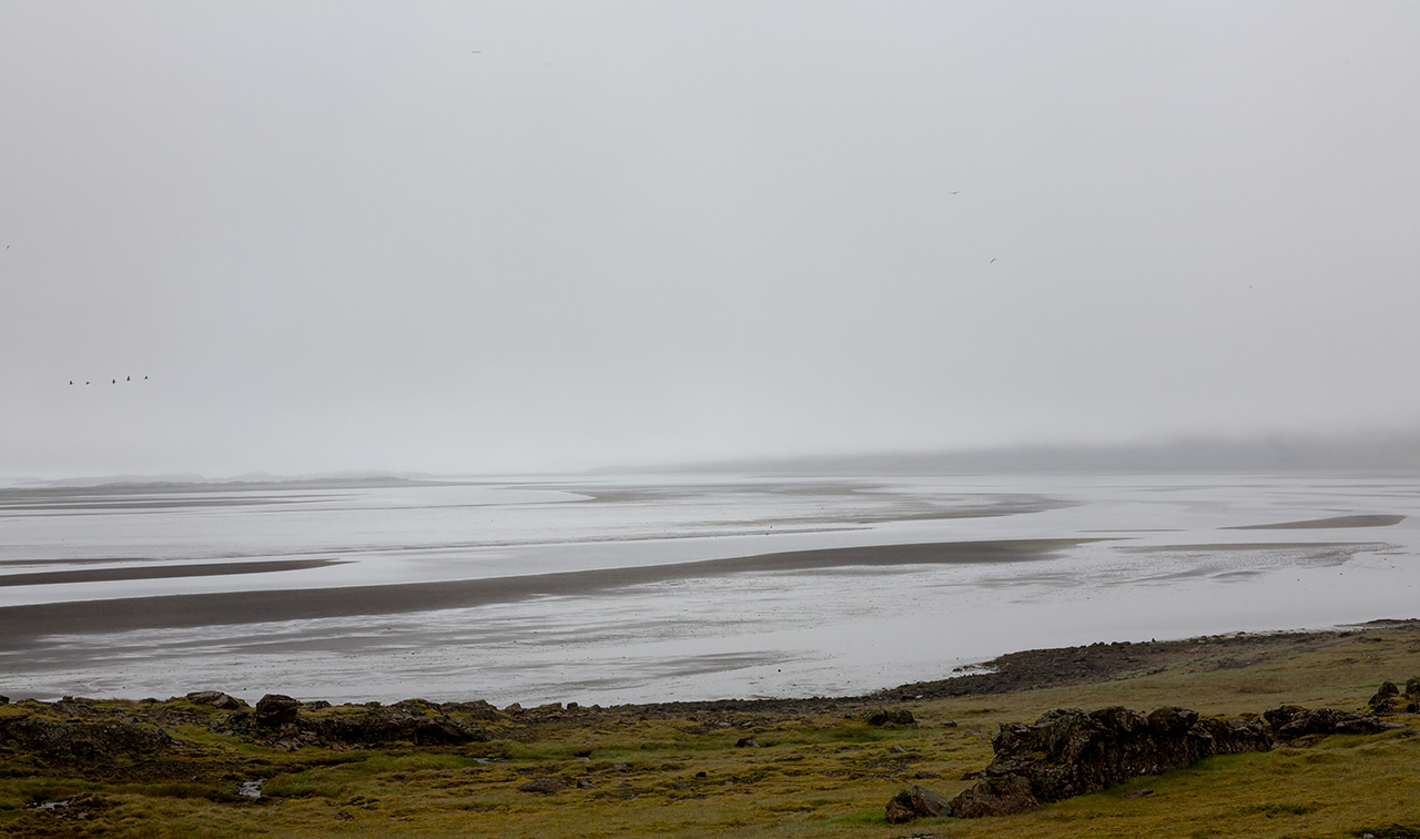 Nebel und Nieselregen an der Küste bei Höfn, Island 2009