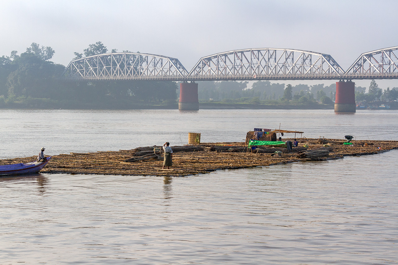 Bambusfloss, Irrawaddy River bei Mandalay, Myanmar, Oktober 2015