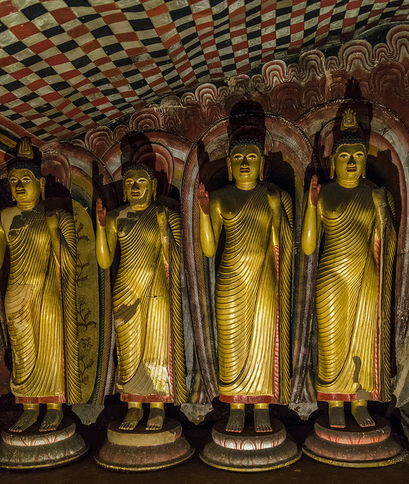 Im Herzen des kulturellen Dreiecks, dessen Eckpunkte Anuradhapura, Polonnaruwa und Kandy markieren, liegen auf 340 m Höhe die Höhlentempel von Dambulla. Es gibt ca. 80 Höhlentempel in Dambulla, davon fünf große. Mit einer Fläche von 2100 m² ist dies die größte Tempelanlage des Landes. In vielen Tempeln befinden sich historische Malereien und Statuen. Insgesamt gibt es 153 Buddha-Statuen, drei Statuen von Königen und vier Statuen von Göttern. Letztere sind zwei Hindu-Götter (Vishnu und Ganesh), die im 12. Jahrhundert entstanden. Die Tempelanlagen sind unter dem Namen "Goldener Tempel von Dambulla" seit 1991 Weltkulturerbe der UNESCO.